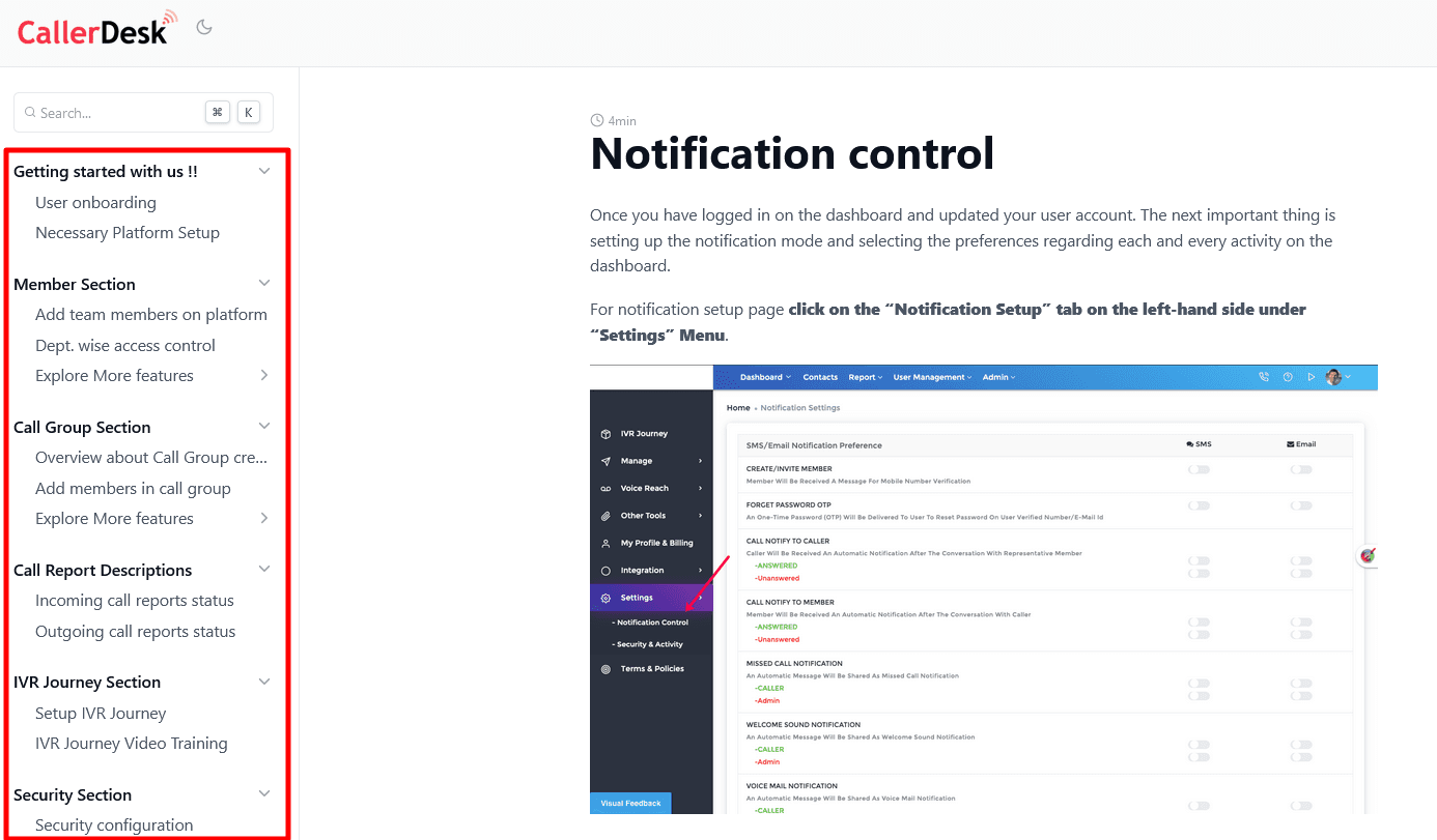 Otherwise, a company like CallerDesk, which has rich technical documentation with many sections and subsections, would have to have its employees copy and paste everything manually.