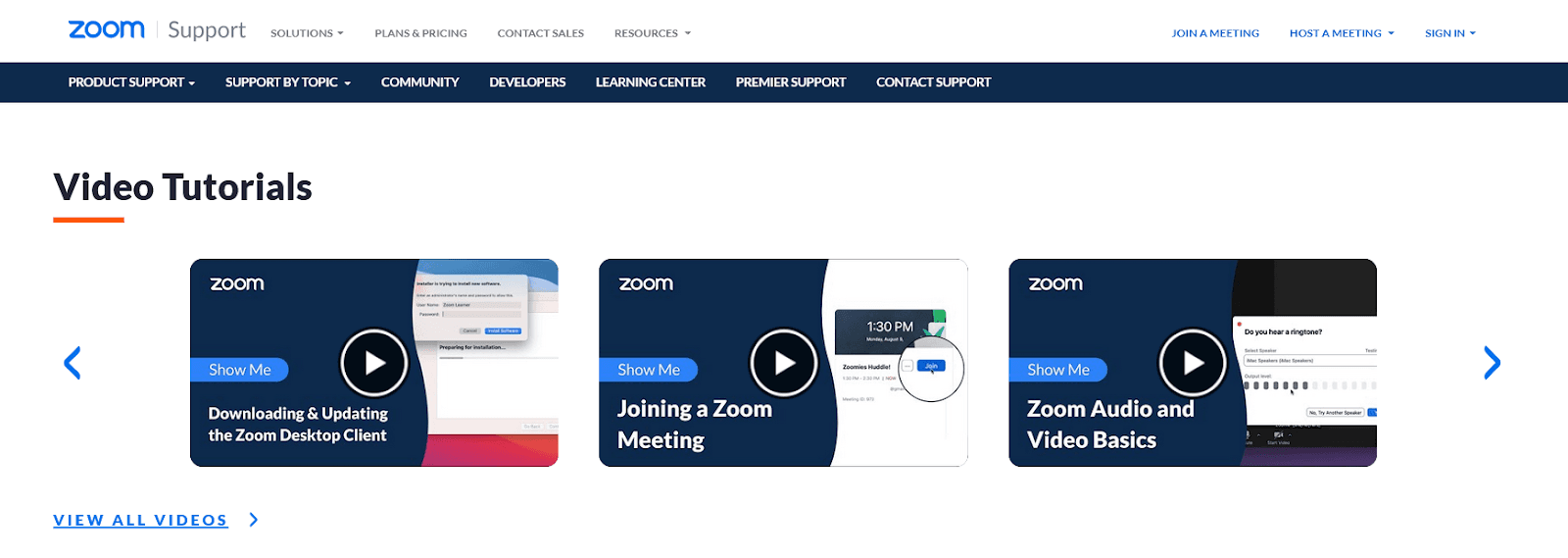 Even if customers don’t like to dig through documentation, they can look for a tutorial video on many of Zoom’s features.