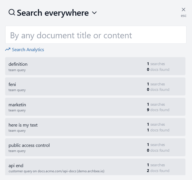 Another valuable feature that HATs like Archbee have is the insight into the terms people search in your documentation.