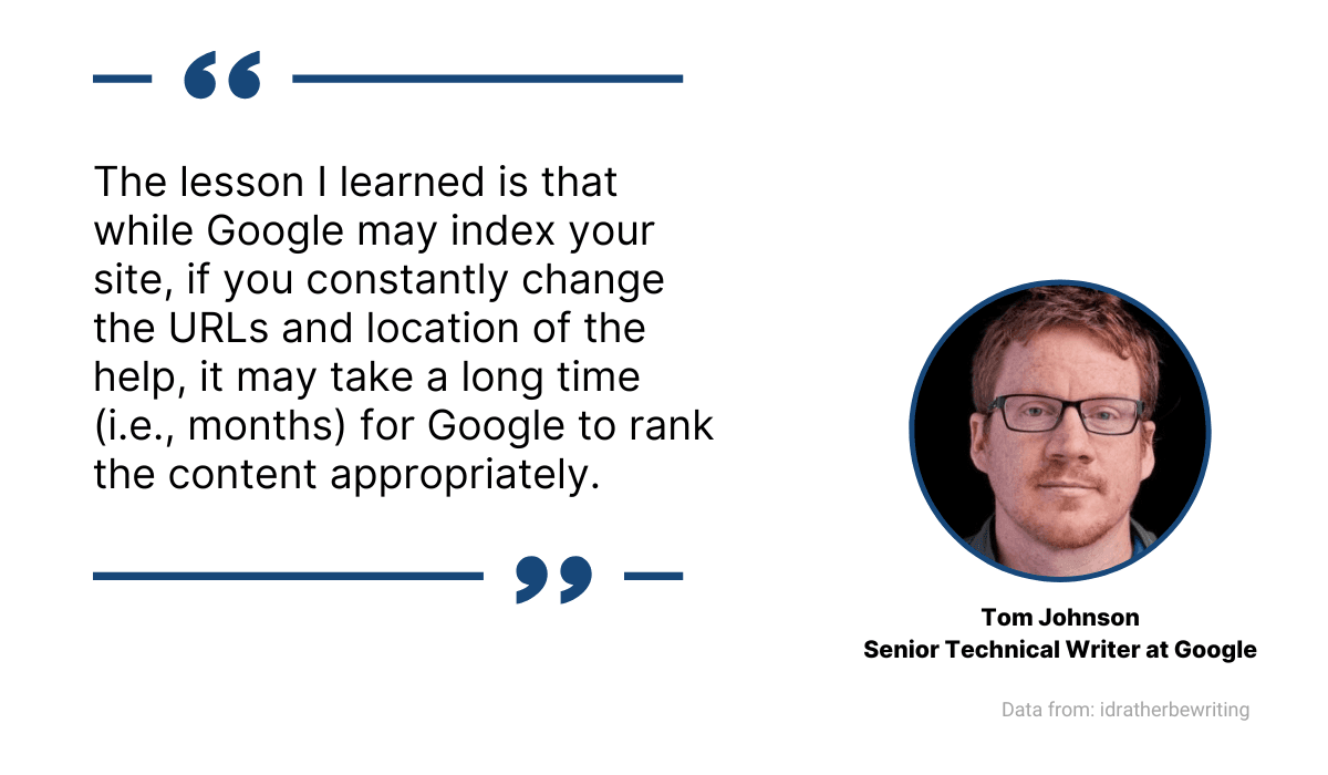 That’s also something where an HAT can be helpful—by having a centralized place for your documentation, you can minimize changing the elements Johnson mentioned and rank better on Google.
