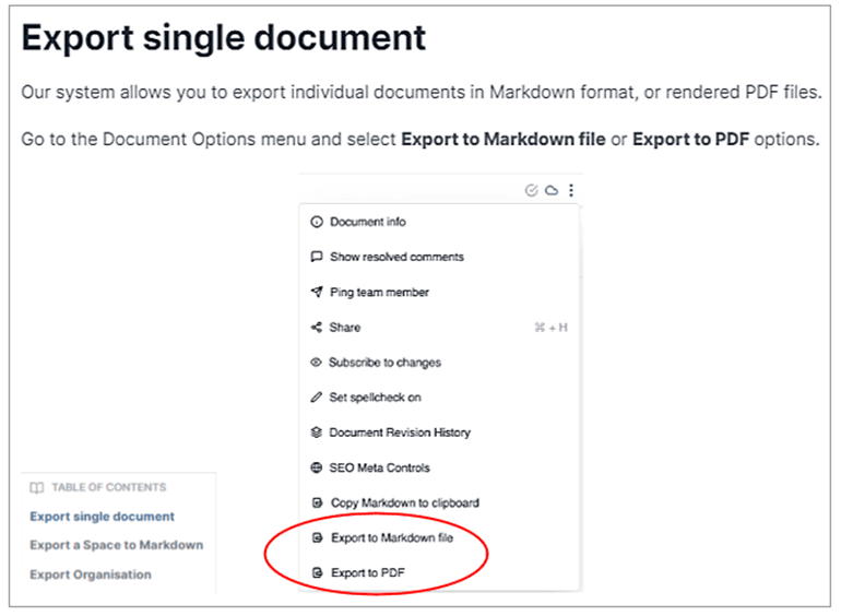 By exporting the document to a commonly used format like PDF or Markdown file, the writer can ensure that both the client and external collaborators, such as freelance writers and contracted SMEs, can access and read the content without any compatibility issues.