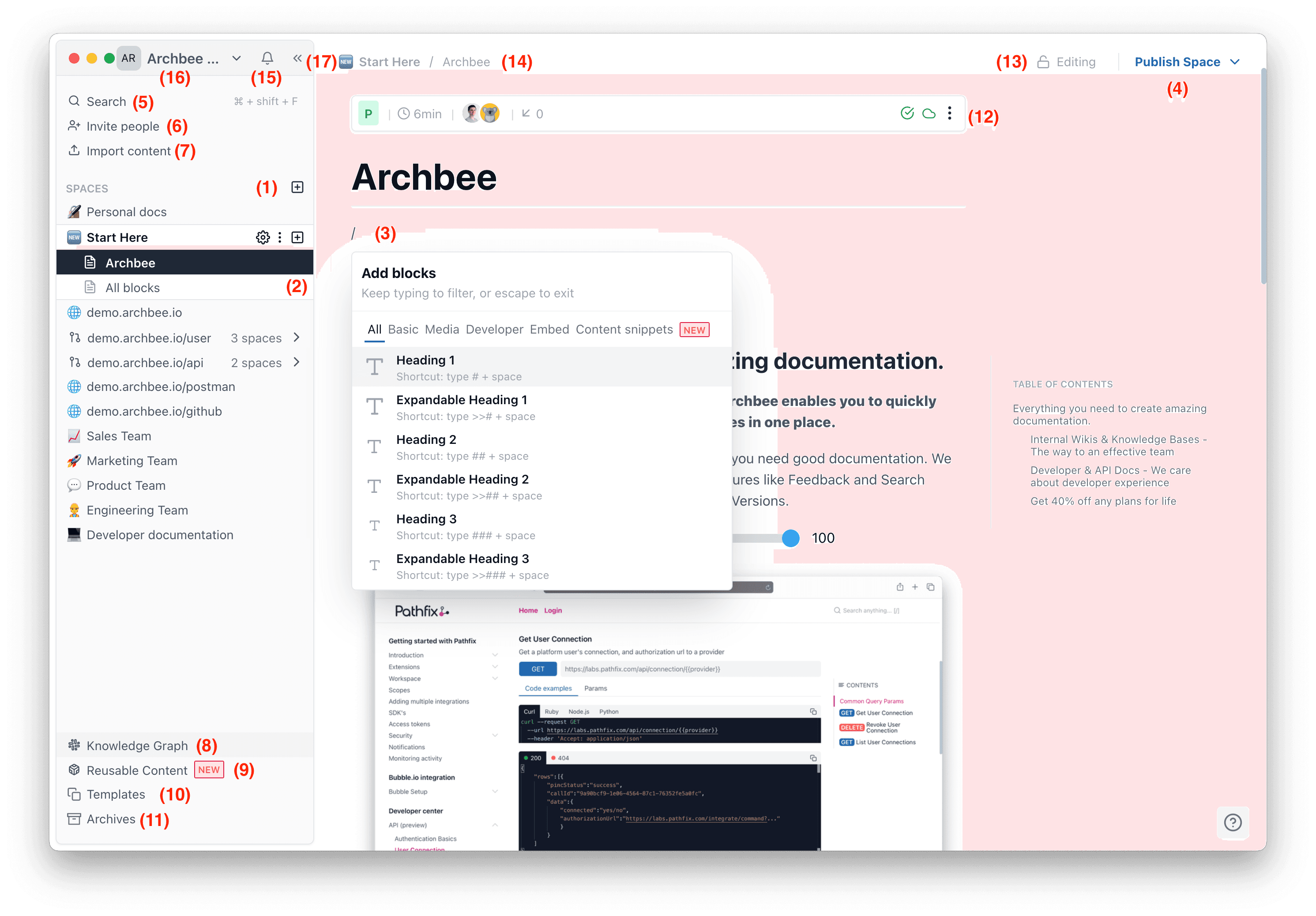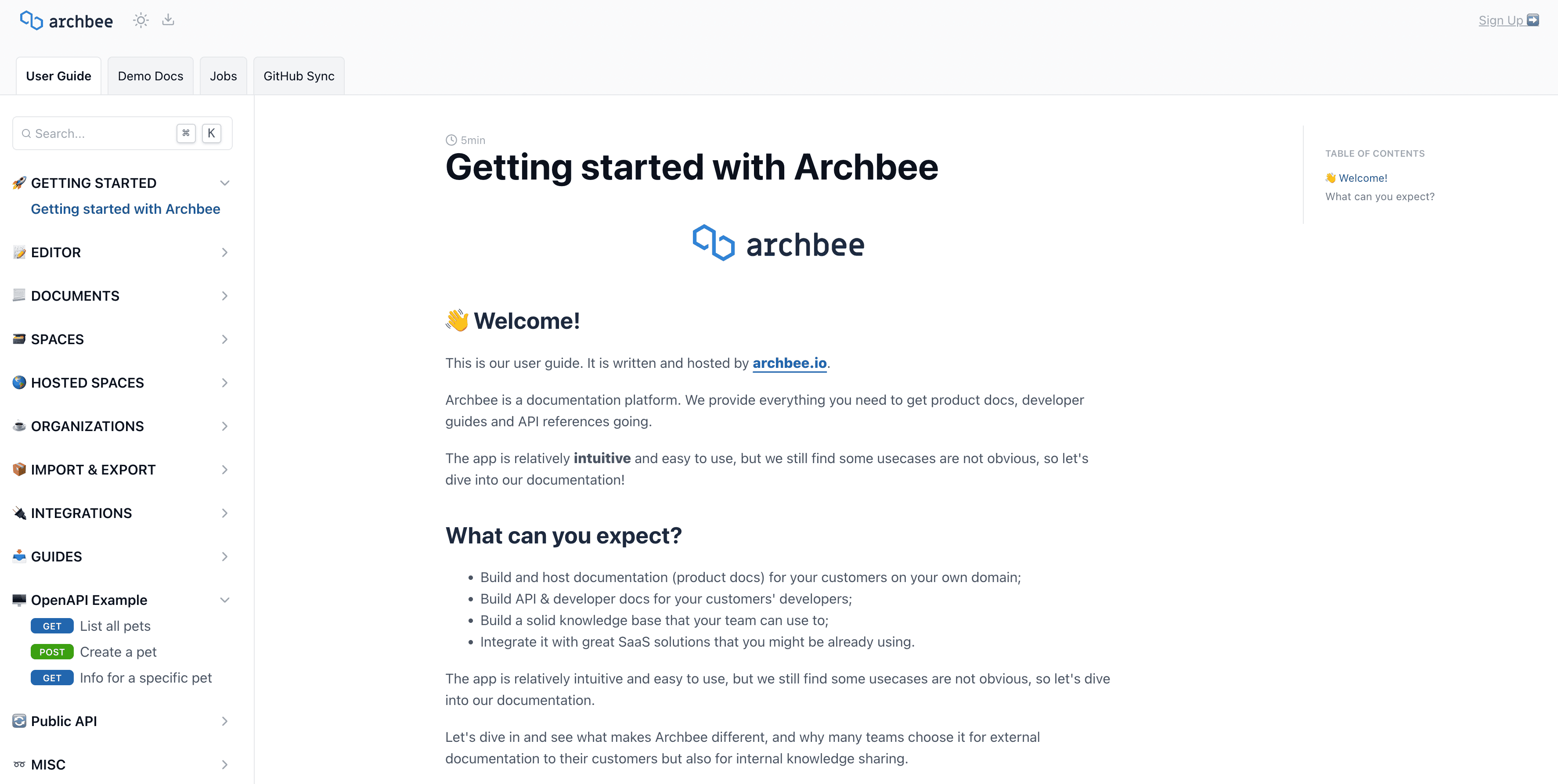 Meet Archbee - a documentation platform for product, developer, and API docs that allows private or public access for readers.