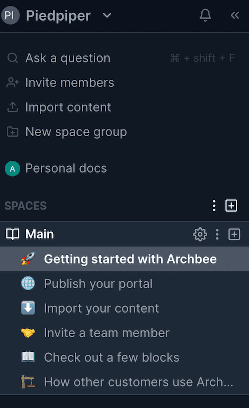 Though content is split by role, try to keep the overall structure consistent for a uniform documentation experience. One excellent way to do this is through Archbee Spaces.