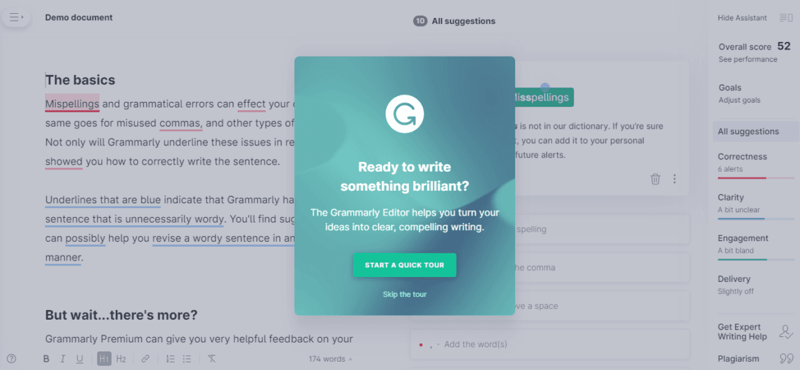 Here’s a great example of a product tour from Grammarly, the text editing software.