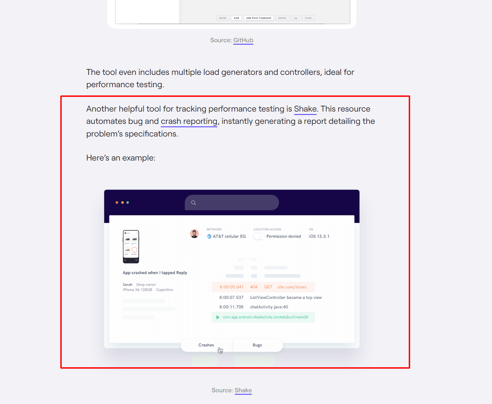 Here’s what that might look like in practice. We’ll take the example of the article “How to improve your mobile app testing process” from Shake’s blog (shown in the screenshot above.)