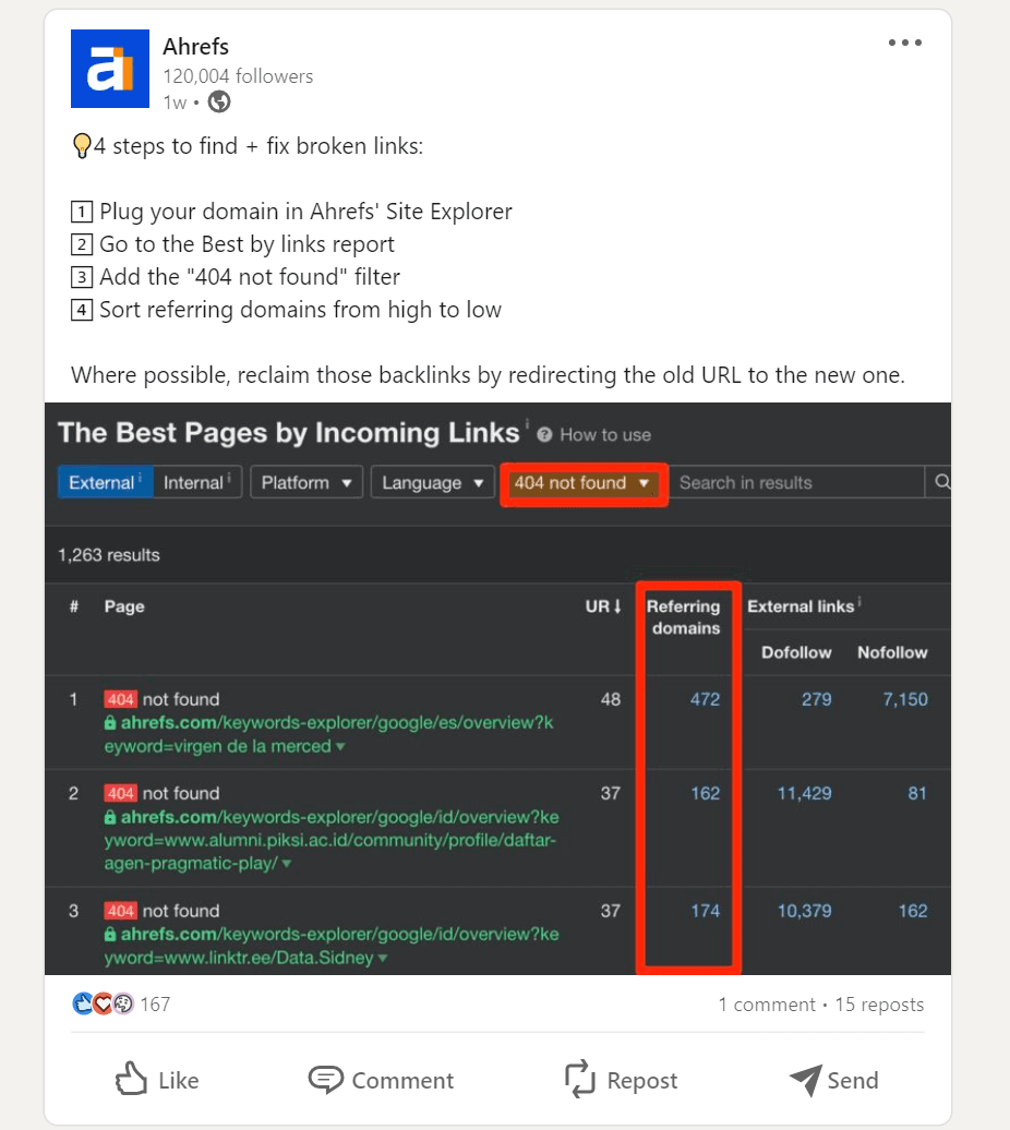 Let’s look at a fantastic example from Ahrefs, the SEO software provider. This company often posts tips for using their product to grow search traffic and optimize websites.