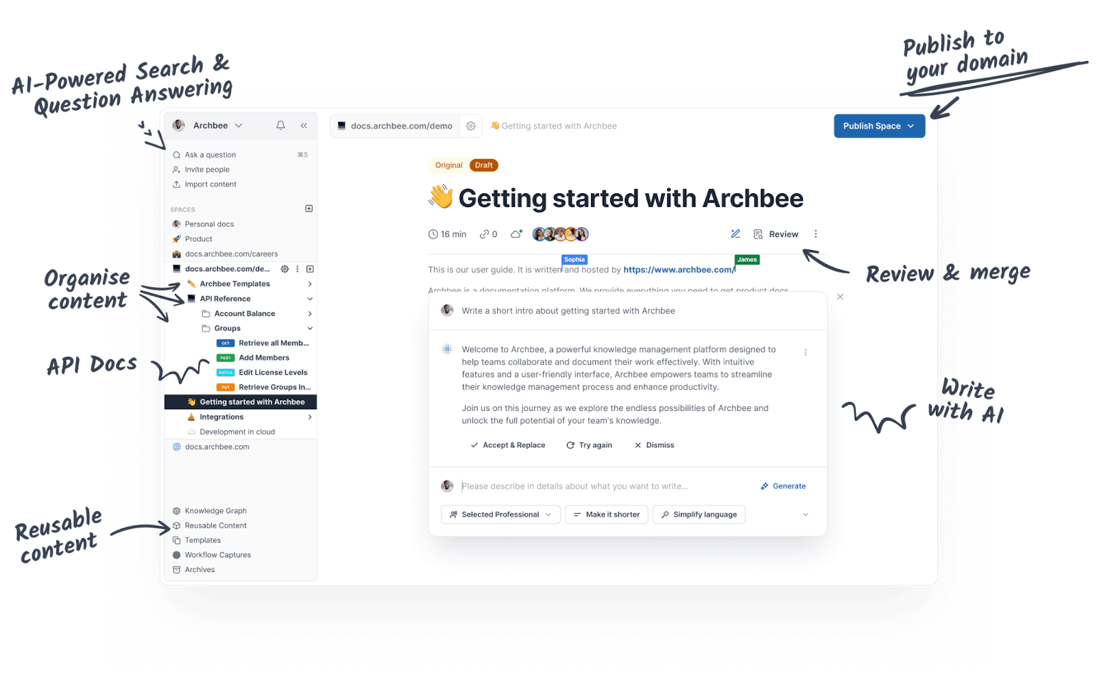 Use Archbee to build, publish, and manage a well-organized knowledge base for better rankings and exceptional usability.
