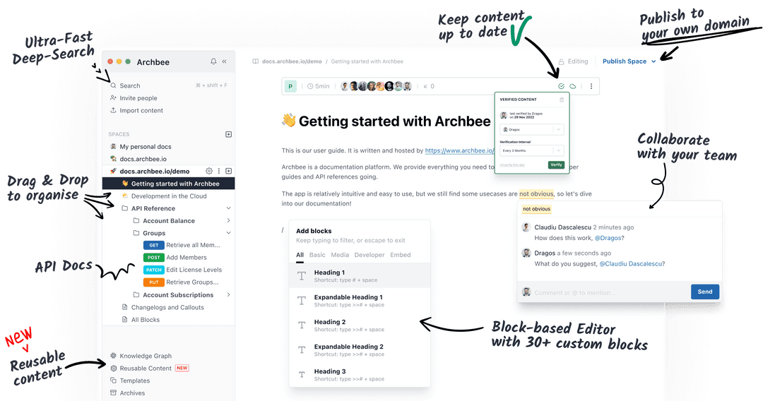 And just like chatbots from our last section, knowledge bases are incredibly easy to build and deploy using documentation software such as Archbee.