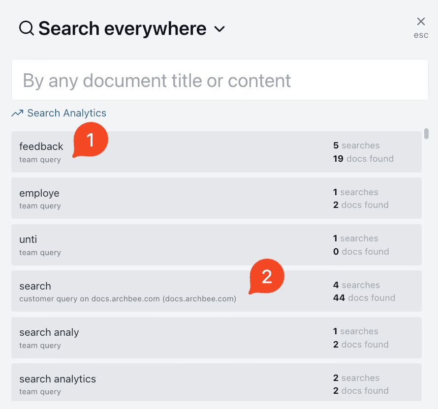 For example, Archbee's documentation software has integrated search analytics that will give you an insight into what users want to know and how often they’re asking the same questions.
