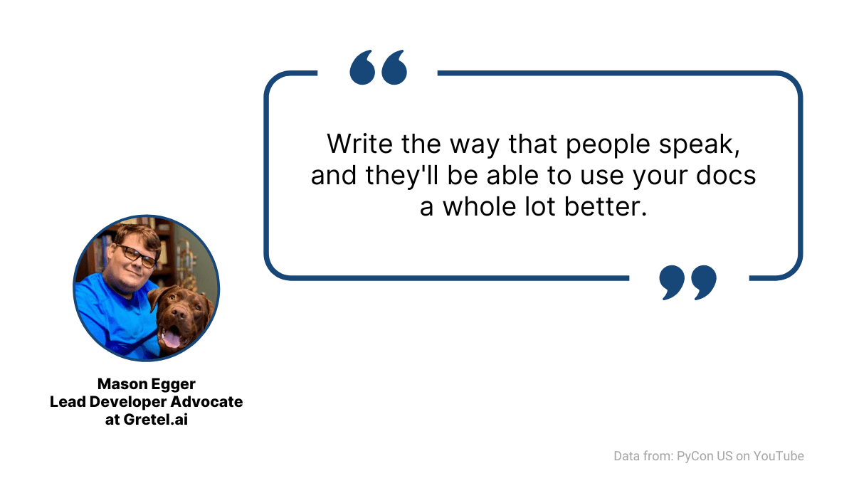 As Mason Egger, developer advocate, programmer, and speaker, explained in his talk at PyCon US, you should simplify your writing to improve your documentation.