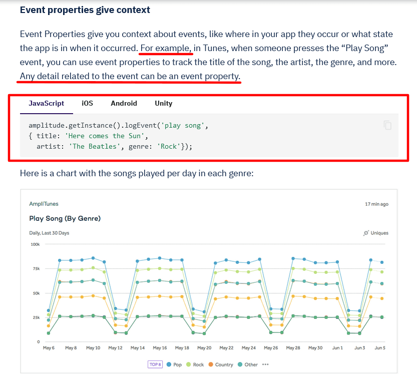 One of those examples is Amplitude’s documentation. Take a look at an excerpt from it below.