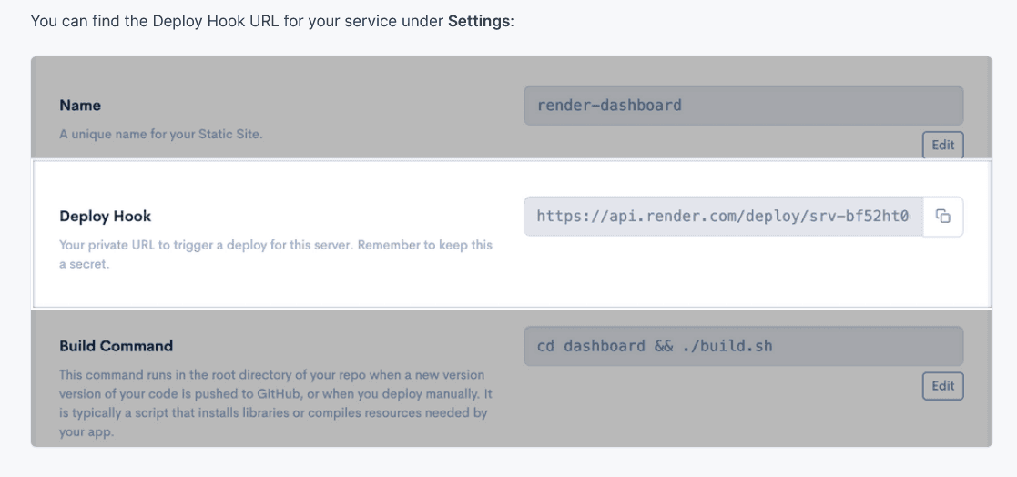 As you can see in the example above, they describe to a developer where they can find the Deploy Hook URL and complement that with a screenshot.
