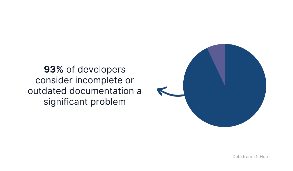 However, according to the GitHub Open Source Survey, 93% of developers have stated that incomplete or outdated documentation is a pervasive problem.