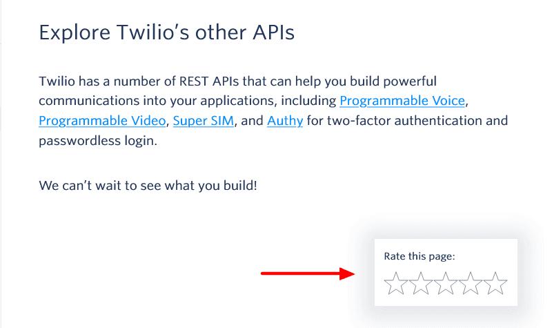 For example, that’s how Twilio does it. They have a star rating system on every page of their developer documentation.