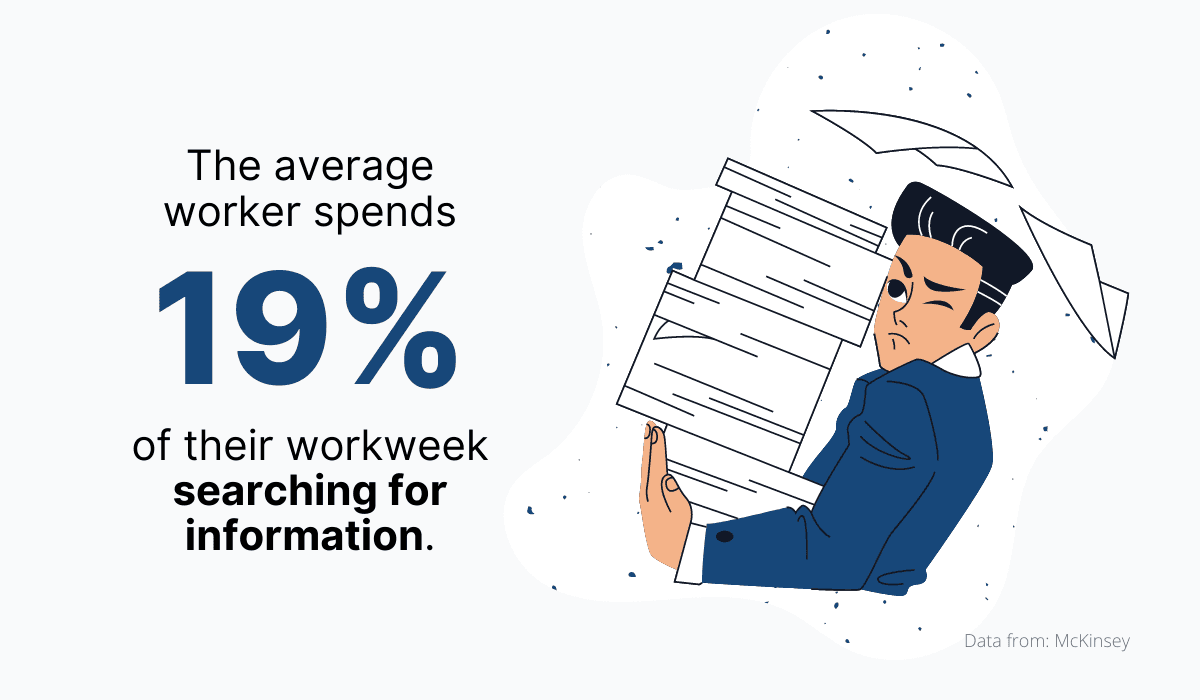 For instance, McKinsey has found that the average worker spends almost a fifth of their workweek finding and gathering information.