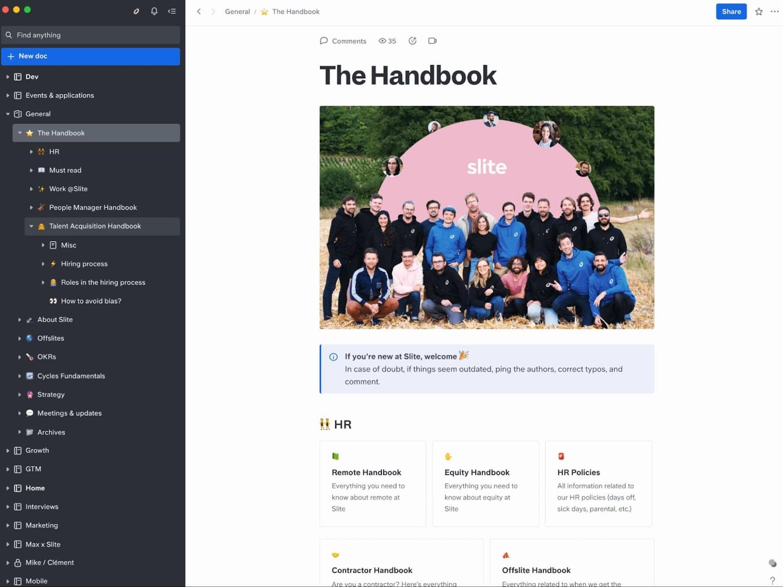 As to the actual architecture, Slite’s internal knowledge base can serve as inspiration: