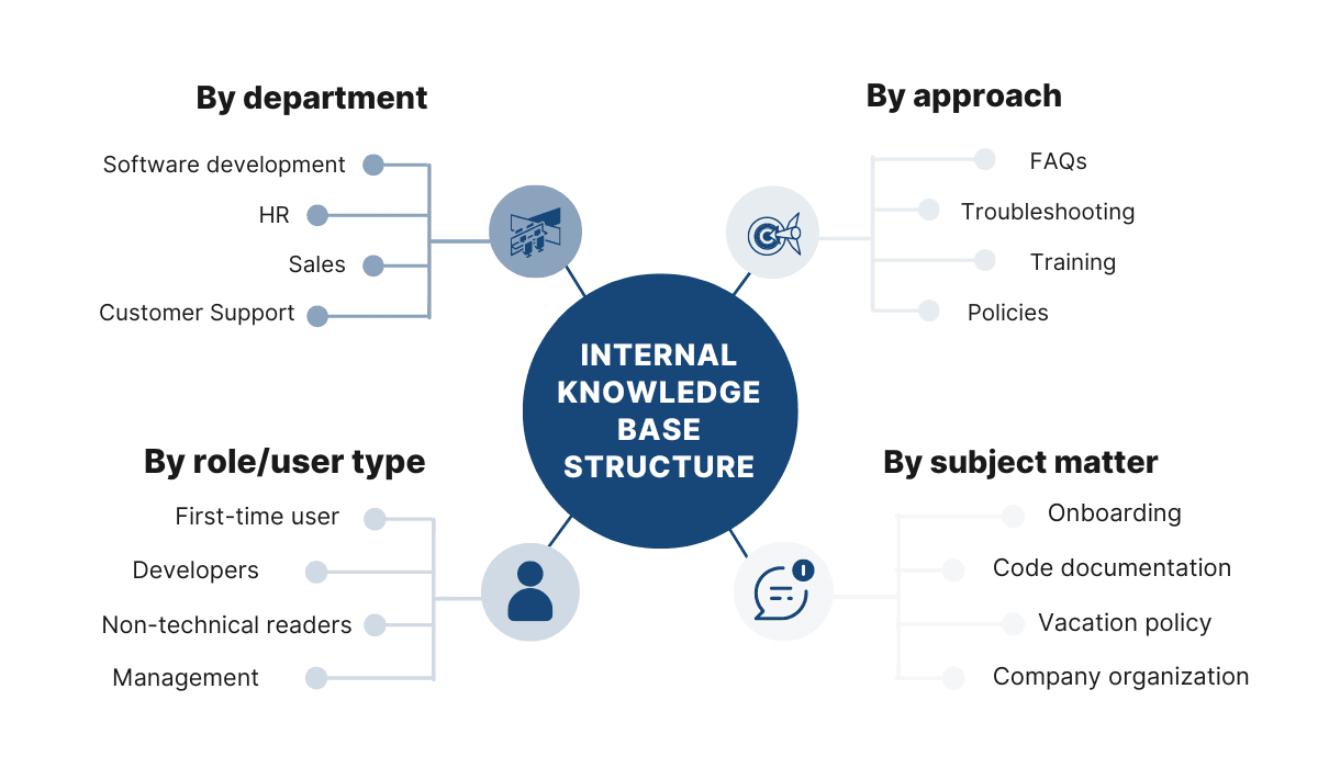 There are no hard-and-fast rules on how to structure your internal knowledge base. Still, whatever method you choose should be logical and work well for your team.