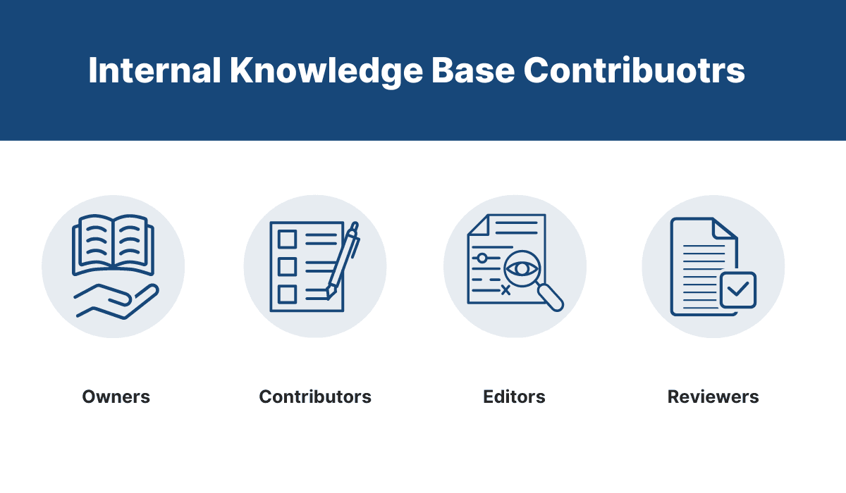 First, determine your core knowledge base team—the owners, who maintain, structure, and compose knowledge base content. These should ideally be employees with a knack for writing.
