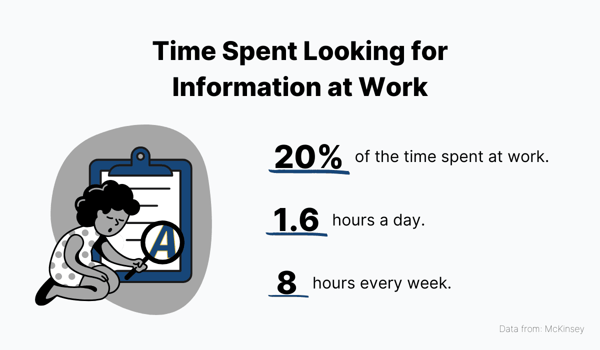 According to research conducted by McKinsey, the average employee spends nearly 20 percent of their time looking for information about work processes, or asking other team members to help them solve specific issues.