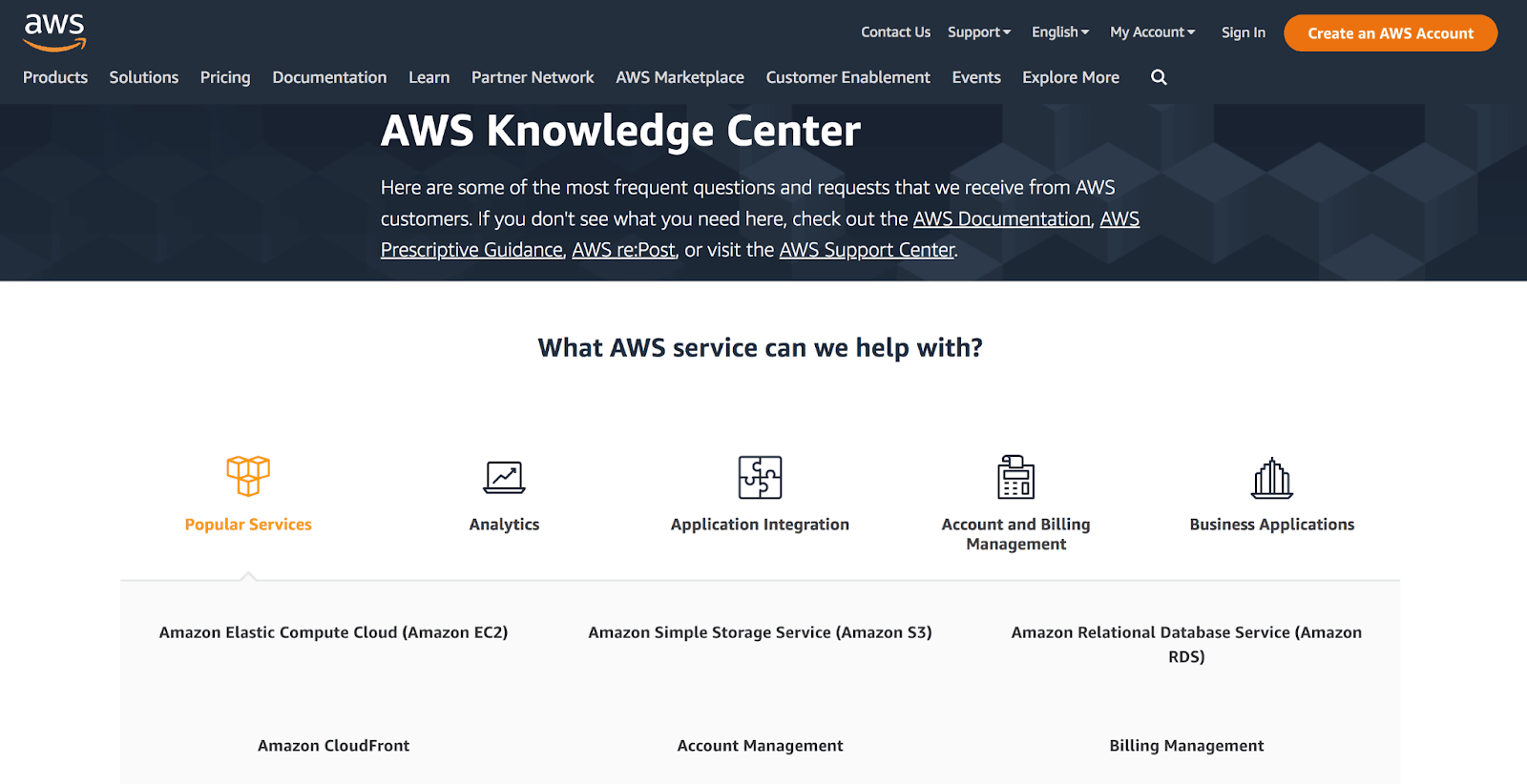Amazon’s AWS knowledge base is an excellent example of this. Take a look: