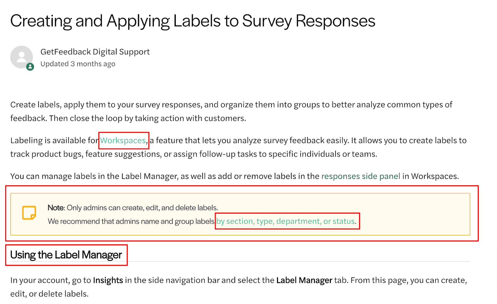 The same principles apply. The hyperlinks are green, the note is in an amber-colored box, and the subheading is the same size, font, and color as before.