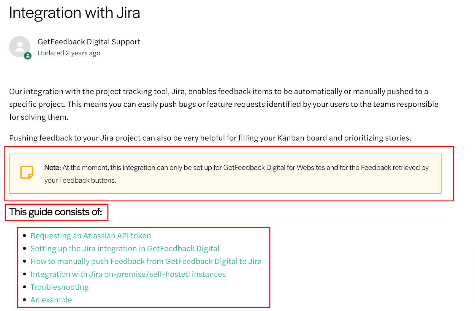 All of the hyperlinks are a bright green color, and an additional note has been outlined in an amber-colored box.