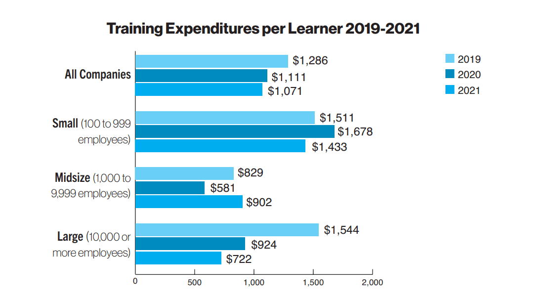 Staff training is an expensive process. The 2021 training industry report has revealed that training a new employee costs companies an average of $1,071.