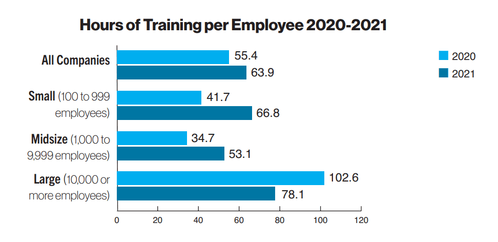 The report also shows that it takes almost 64 working hours to train an employee—that’s more than a week and a half of downtime for each trainee.