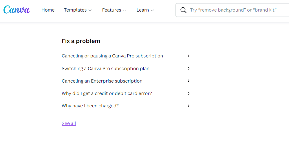 For instance, Canva, an online design tool, has an extensive knowledge base where customers can find answers to their questions.