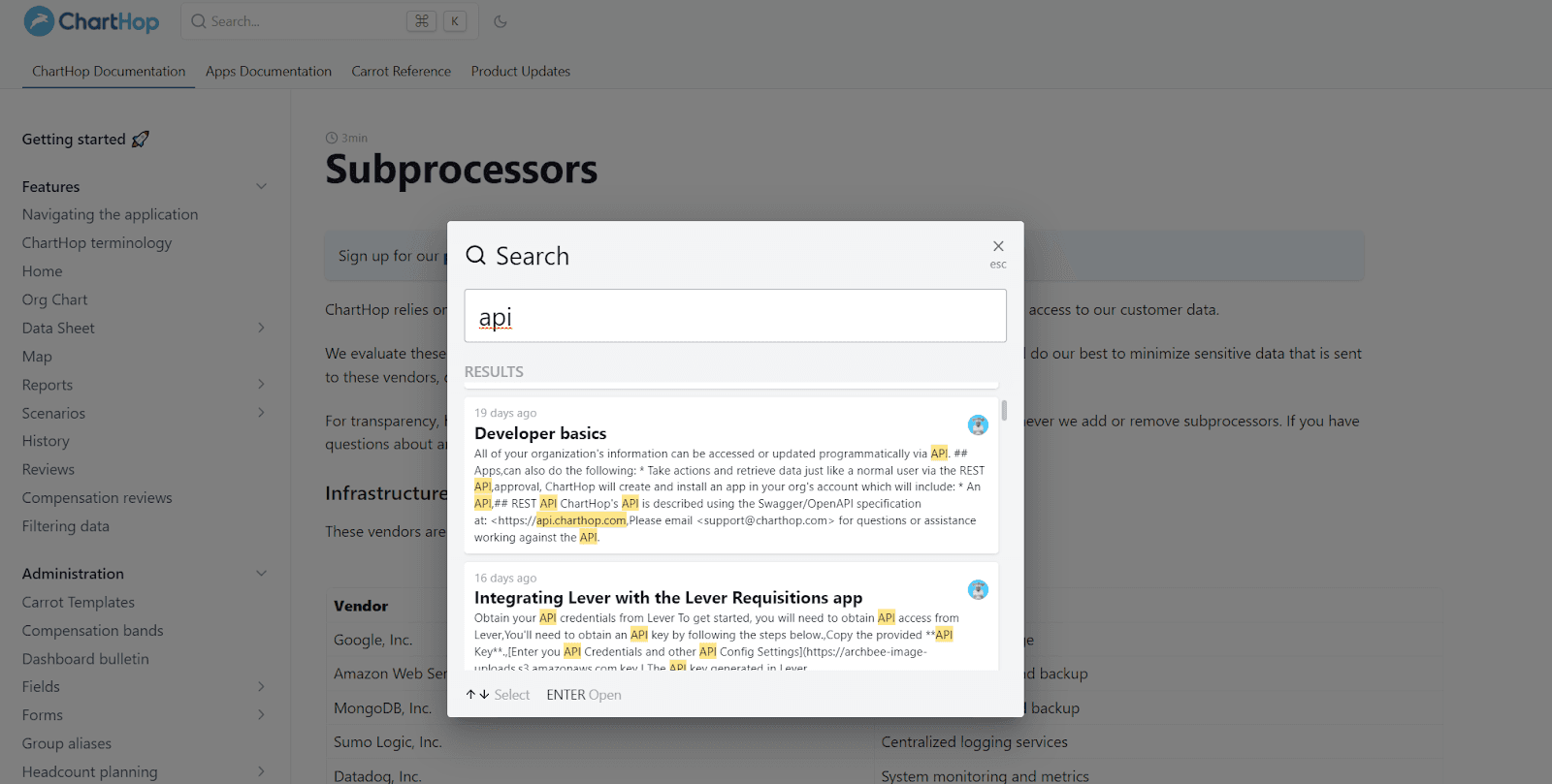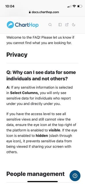 Here’s what the feature looks like in the documentation base of our client ChartHop.