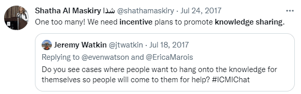 Stan Garfield, a KM expert, agrees that incentives and rewards are a great way to get people to contribute with their insights.