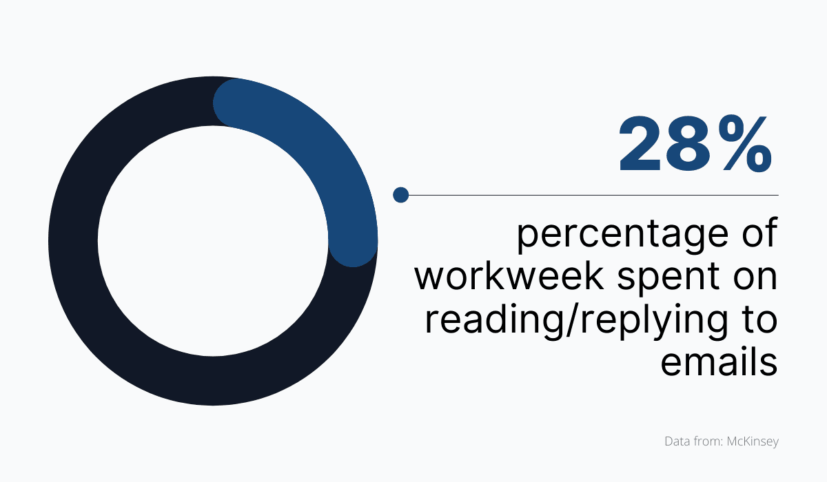 However, McKinsey’s research found that employees spend almost a third of their workweek reading and answering emails. Because of this, many of them don’t even read most of the emails.