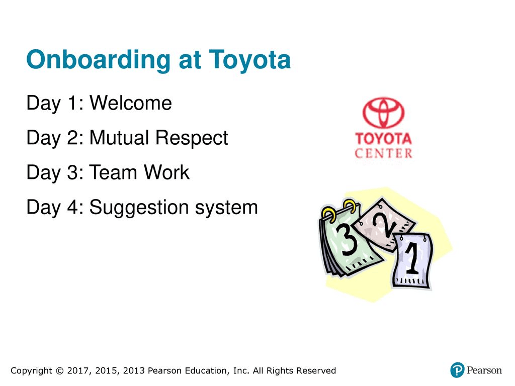 More specifically, the HR team explains the importance of teamwork at Toyota. The same values are repeated the next day, alongside mutual respect and communication.