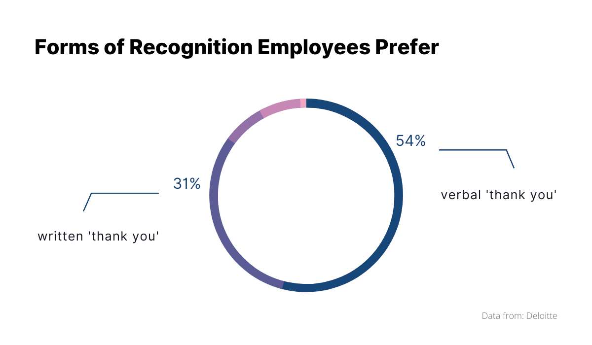 This data might be scary for companies who simply don’t exactly have the funds to go all out, but don’t fret it. It turns out that employees like getting praise even more than physical gifts.