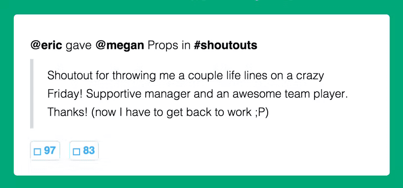 With such an app, you can quickly reward an especially helpful team member by giving them a public shoutout in a shared communication channel. Public recognition shows others what kind of behavior you encourage and support.