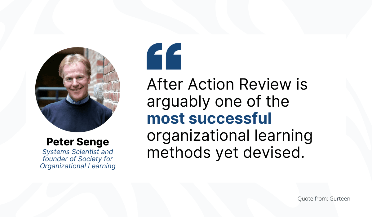 Peter Senge, a system scientist, speaks very highly of AAR, claiming it’s one of the best learning methods out there.