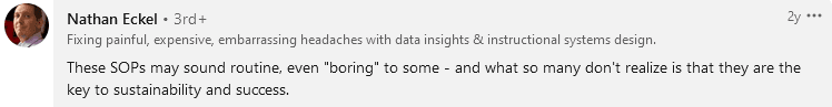 Eckel is right: without SOPs, you’re fostering tribal knowledge.