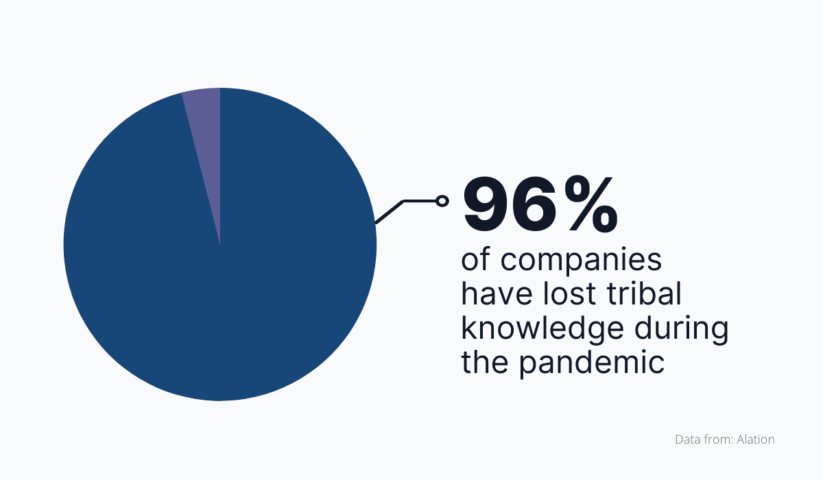 By doing this, you’re risking knowledge loss that occurs when people with unique skills and insights leave your company. It’s precisely what happened to 96% of companies during the pandemic.
