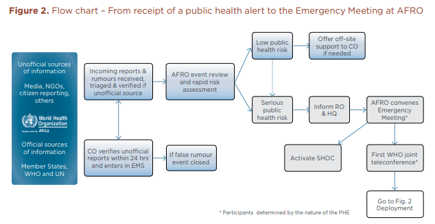They have decided to use a flow chart to explain the different steps of the process that takes place after receiving a public health alert.