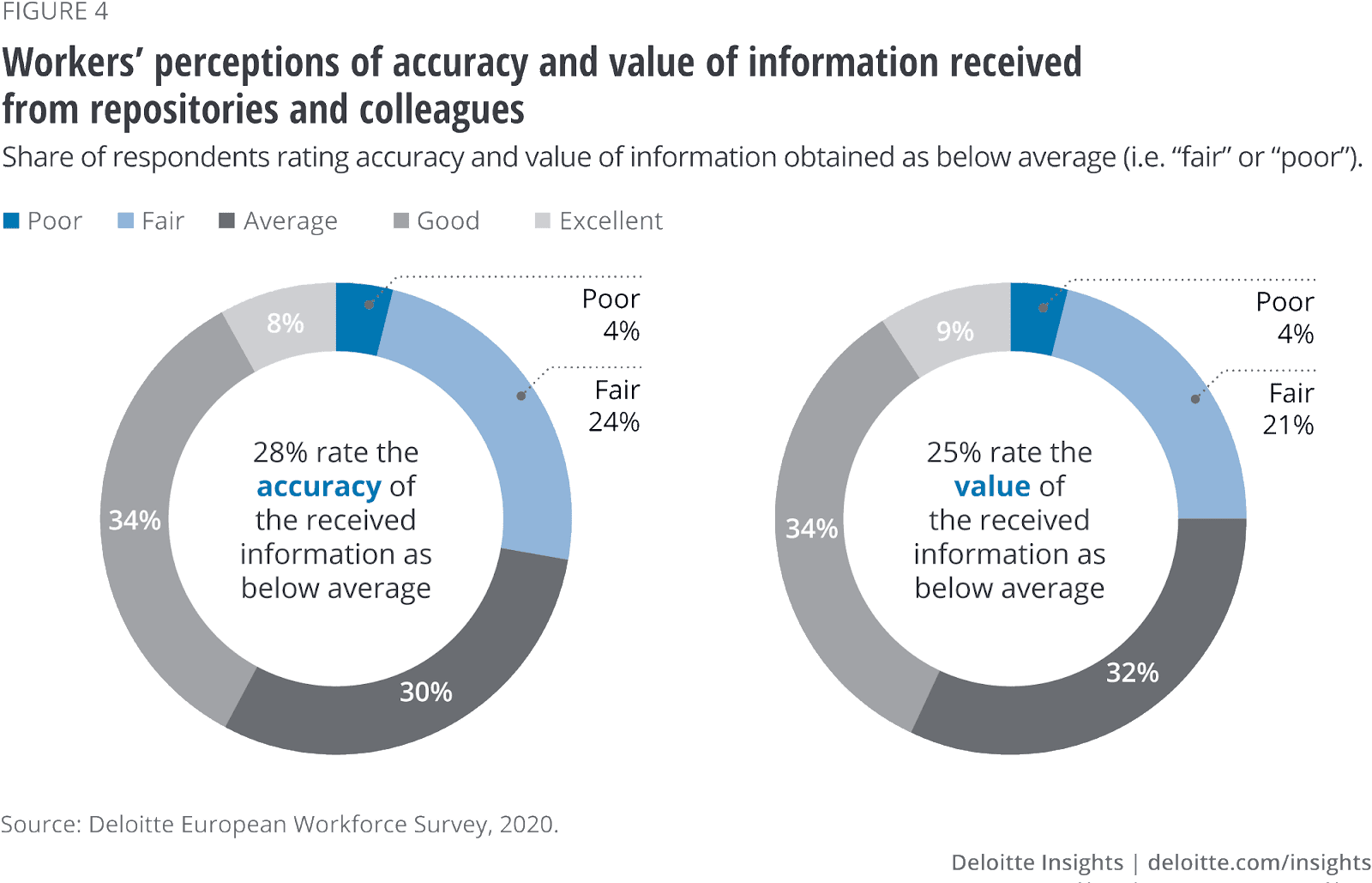 The survey states that every fourth employee believes that the information they’ve received from the knowledge repositories or other colleagues is below average.