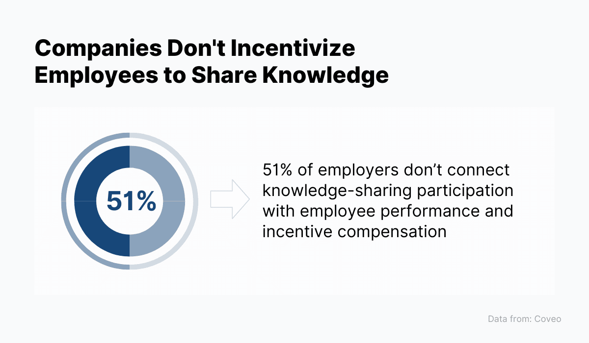 Unfortunately, statistics show that 51% of companies don’t connect employee participation in knowledge sharing with performance, or incentivize it.