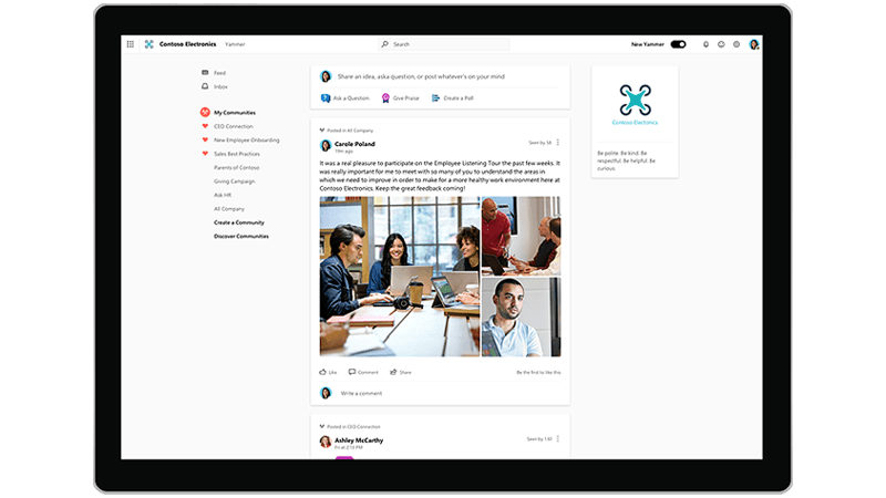 Yammer then gathers feedback from team members about the new content to determine if it’s quality enough to become a part of a standard knowledge library.