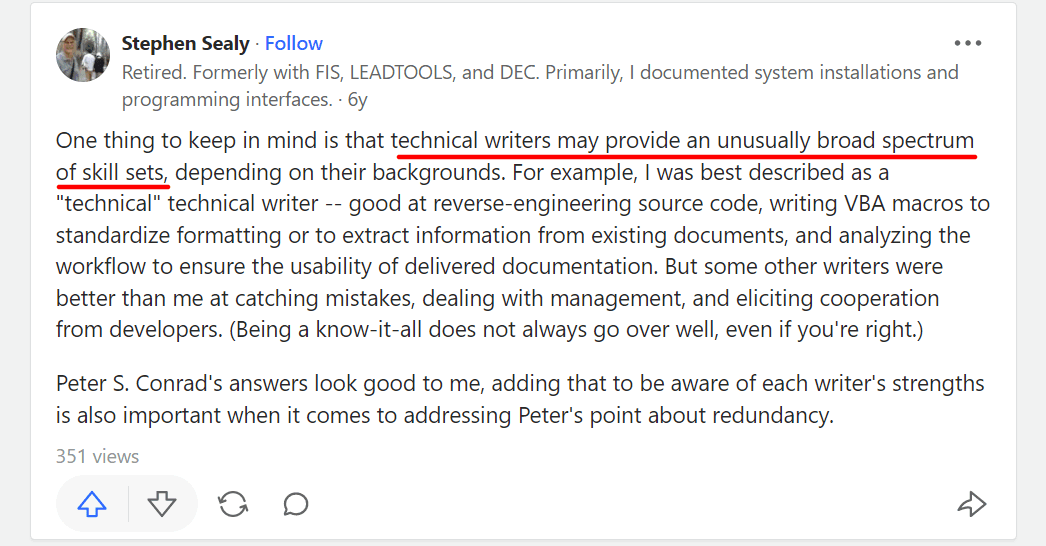 Technical writing is often lonely work, so the opportunity to learn and share will definitely make a difference.