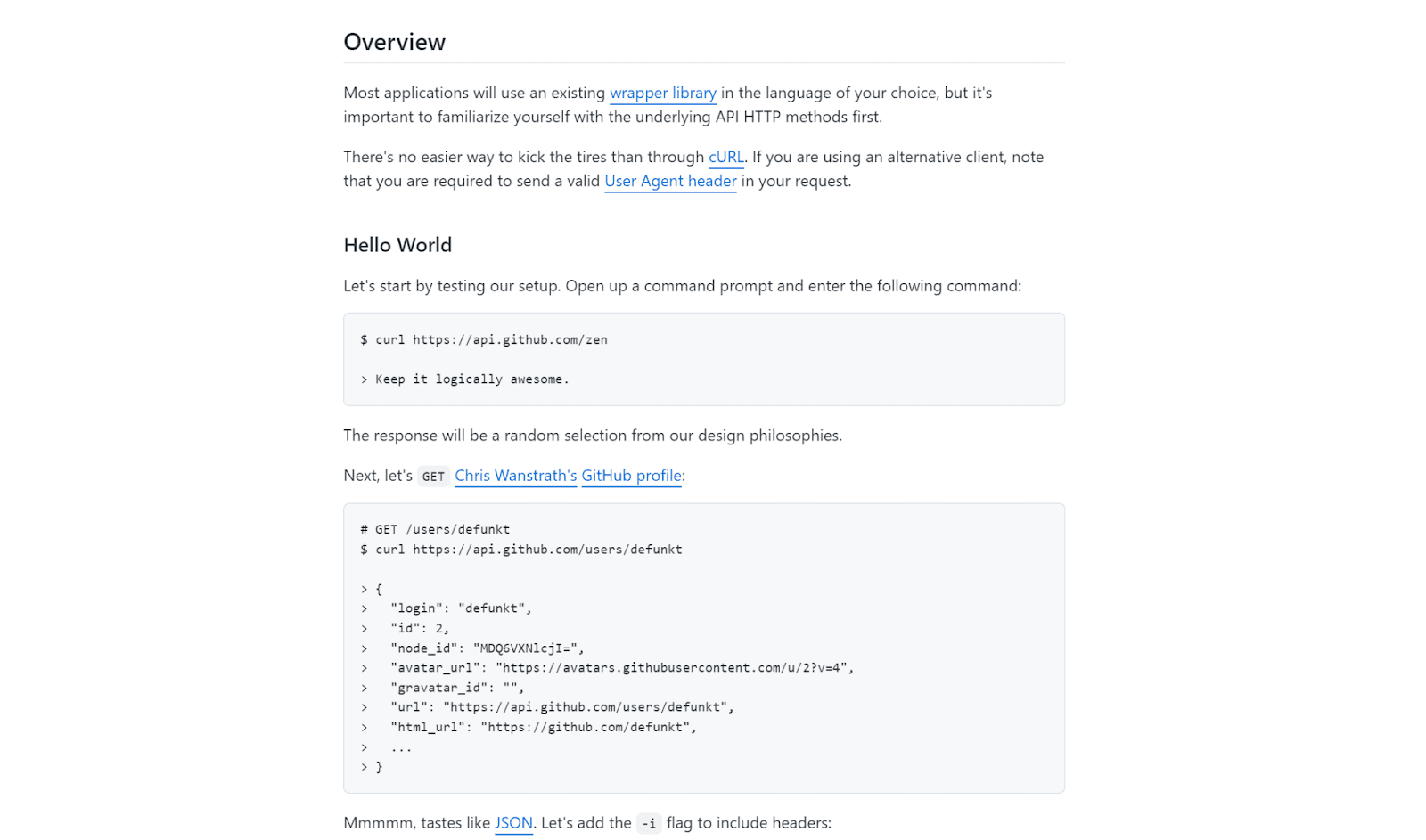 For instance, have a look at the documentation for GitHub’s REST API below.