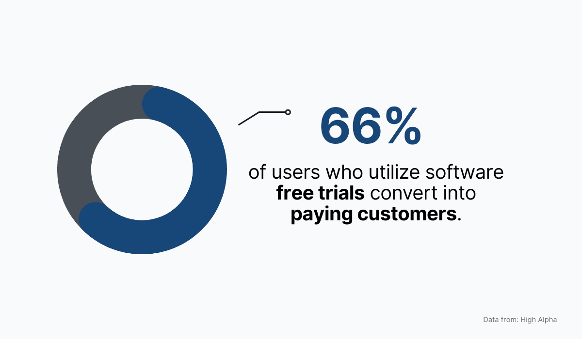 Studies show that as much as two-thirds of the users who take advantage of the free trial end up converting into paying customers.