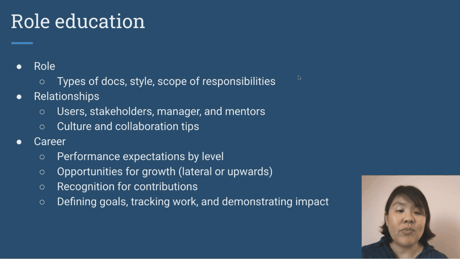 Yap identifies the uncertainty about the role as one of the main flaws of tech writer onboarding processes she’s seen.