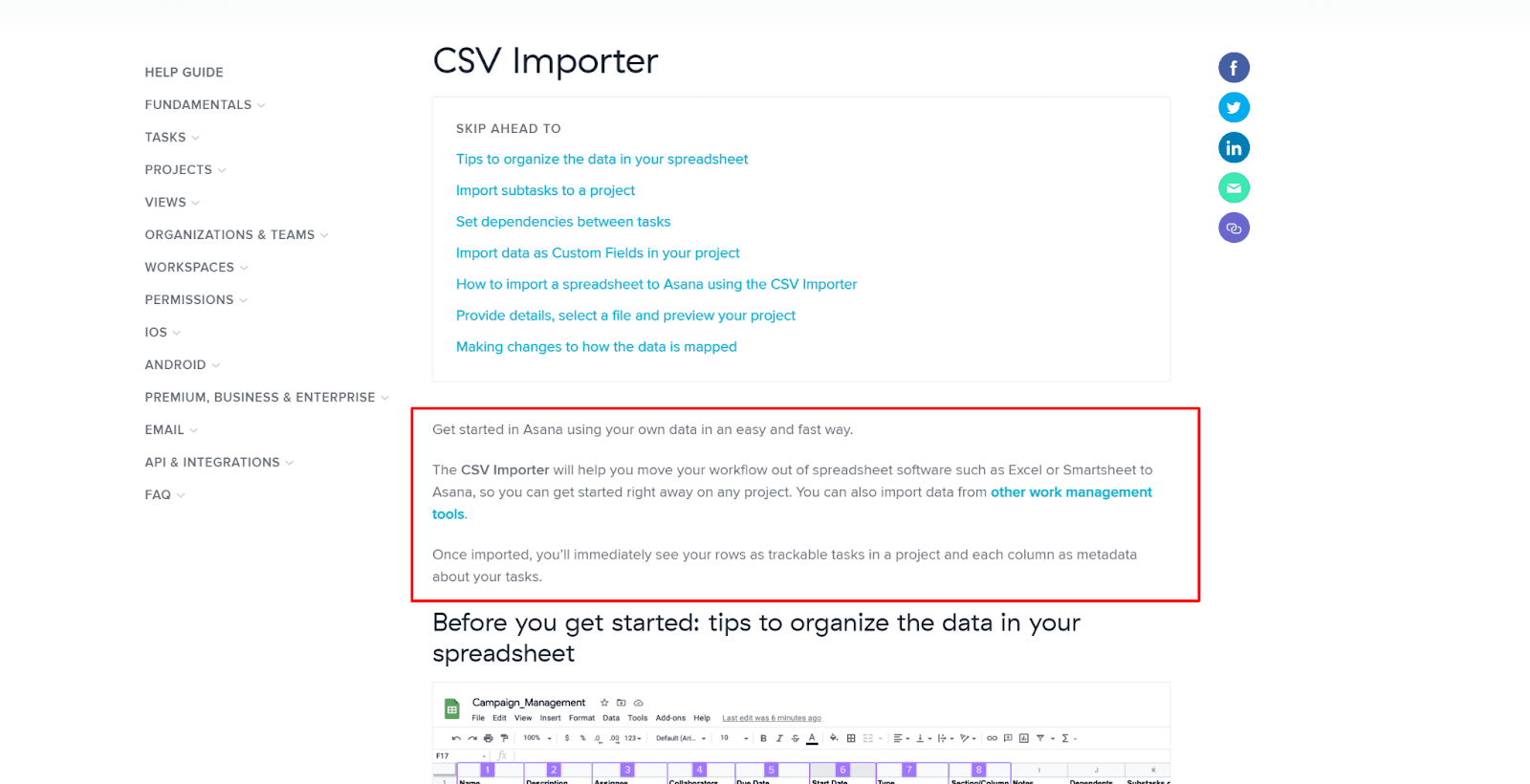 For example, Asana, the work management platform, offers a CSV importer that makes importing project data from other work management tools and spreadsheets much easier.