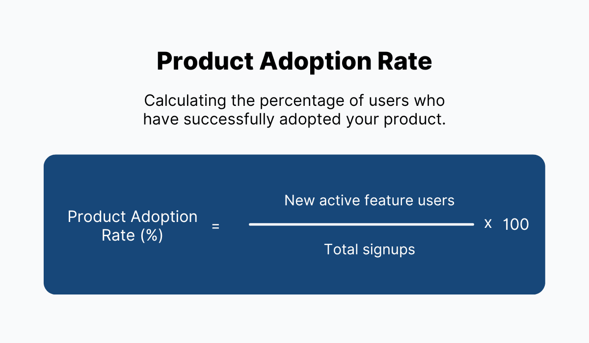 Product conversion rate is the percentage of users that have completed a given task relevant to the adoption of the product. This metric is important as it provides insight on user behavior and helps identify areas of the product adoption process that require attention.
