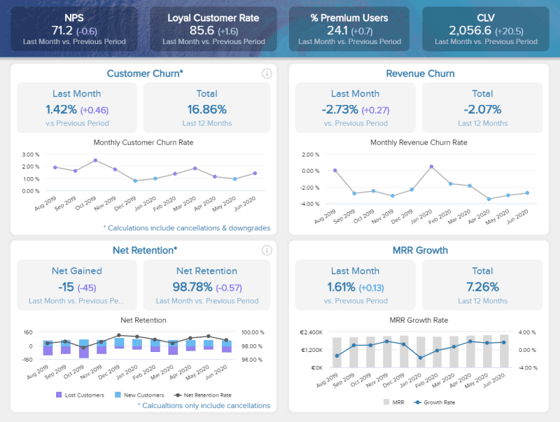 We can do that by tracking churn, for example, with analytics software.