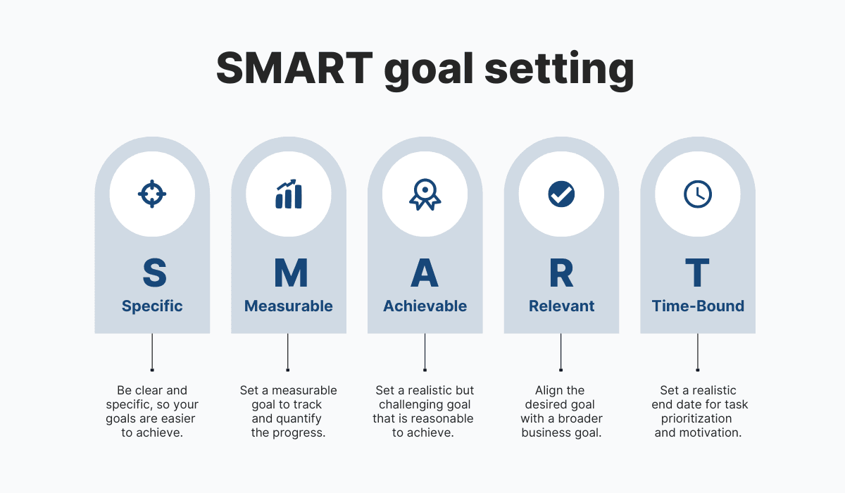 - Clear goals (ideally SMART)